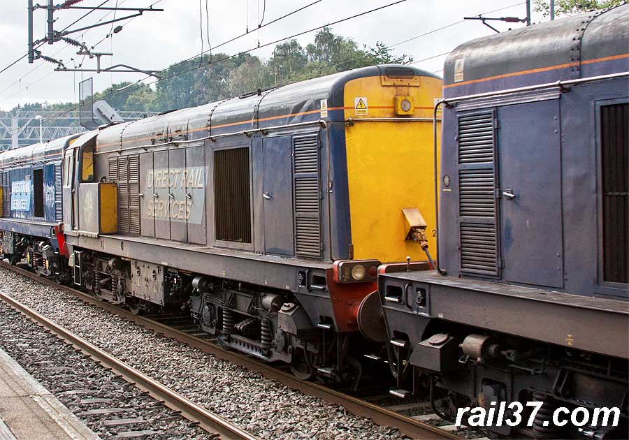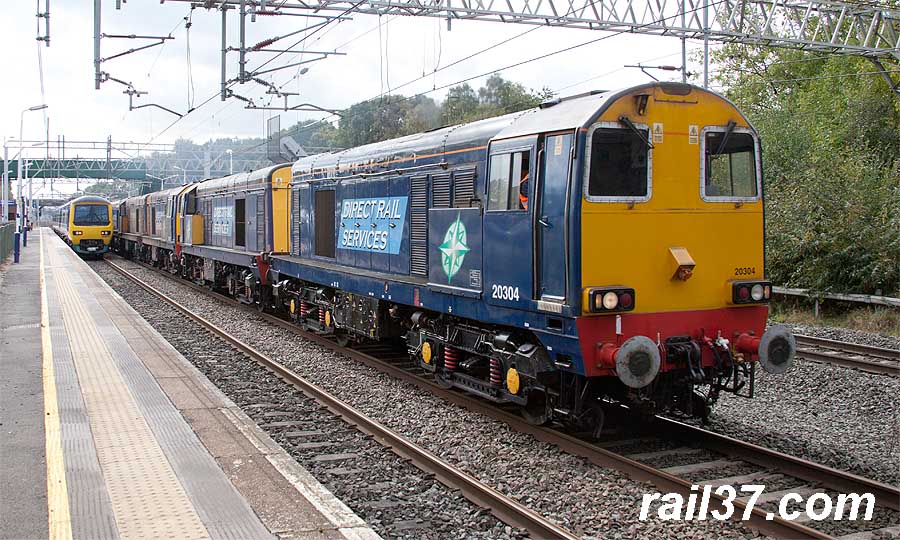 A string/convoy of five class 20's on the move for RHTT work at York with 20304 leading.